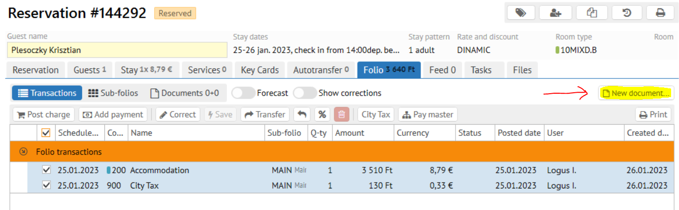 - And click New document \ Invoice