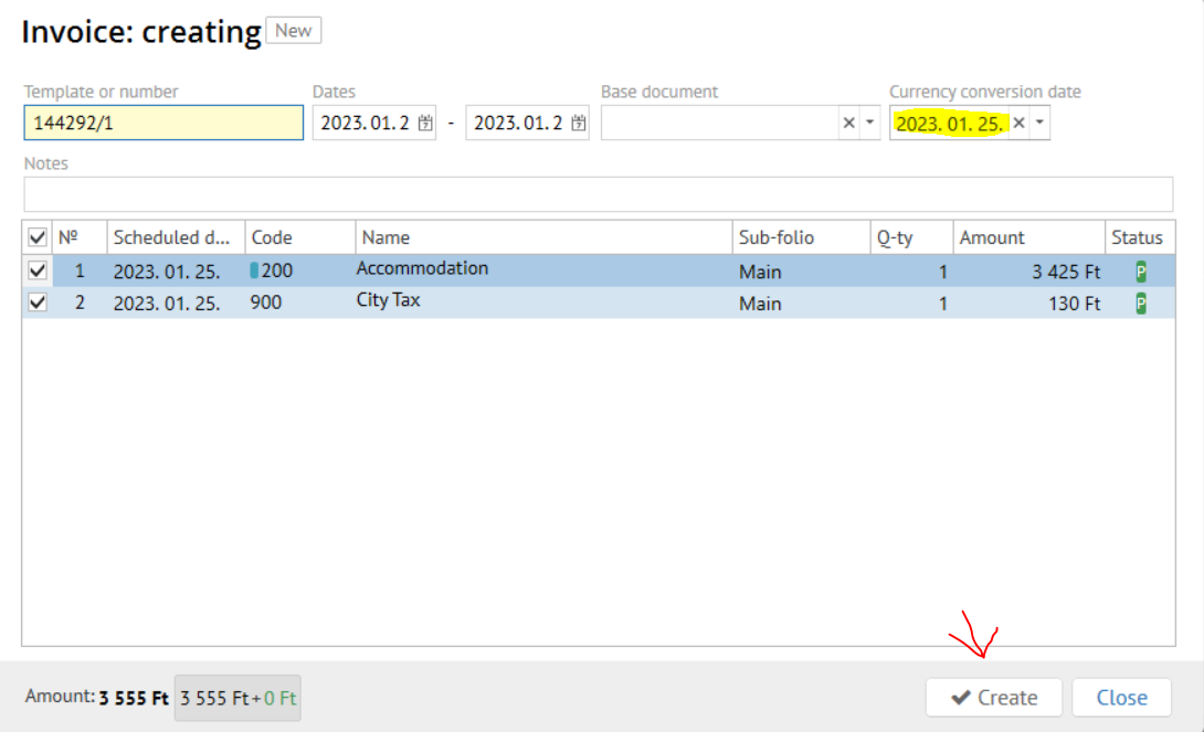 Confirm invoice creation