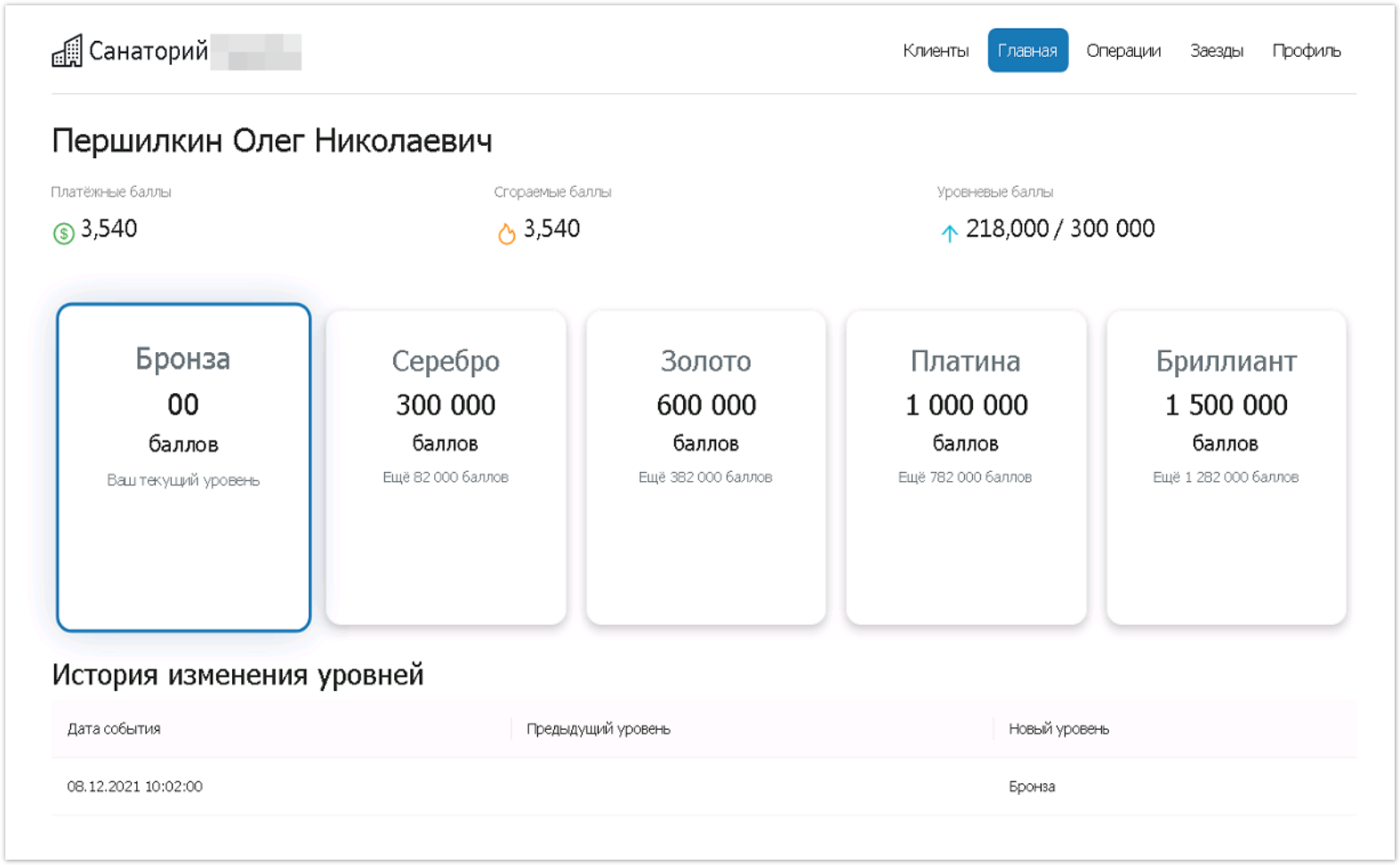 • Уровневые баллы. Позволяют двигаться гостю по т.н. "уровням" системы лояльности (напр. бронзовый, серебряный, золотой), а уровни в свою очередь могут определять другие привилегии гостя. Уровневые баллы могут списываться/сгорать только по истечению срока годности.