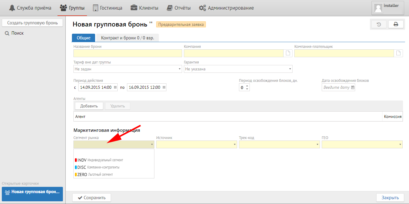 Сегмент рынка - глобальный тип бизнеса (в брони почти никогда не заполняется, заполняется в настройке тарифа).