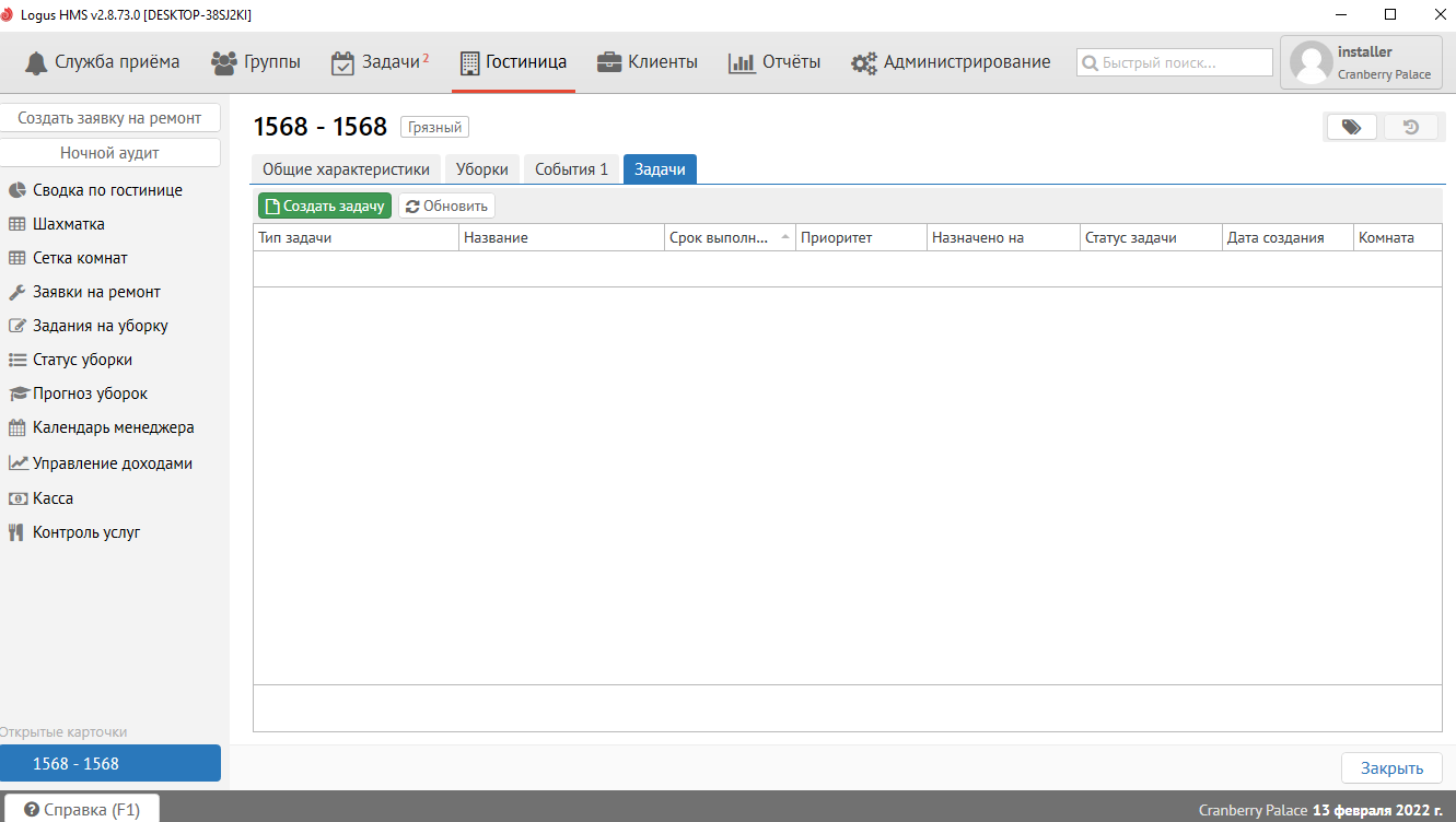 На вкладке "Задачи" отображаются задачи, которые закреплены за данной комнатой: