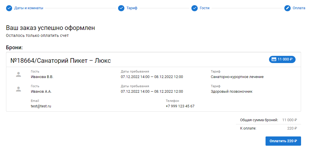 Модуль предназначен для размещения формы бронирования на сайте санатория/гостиницы.