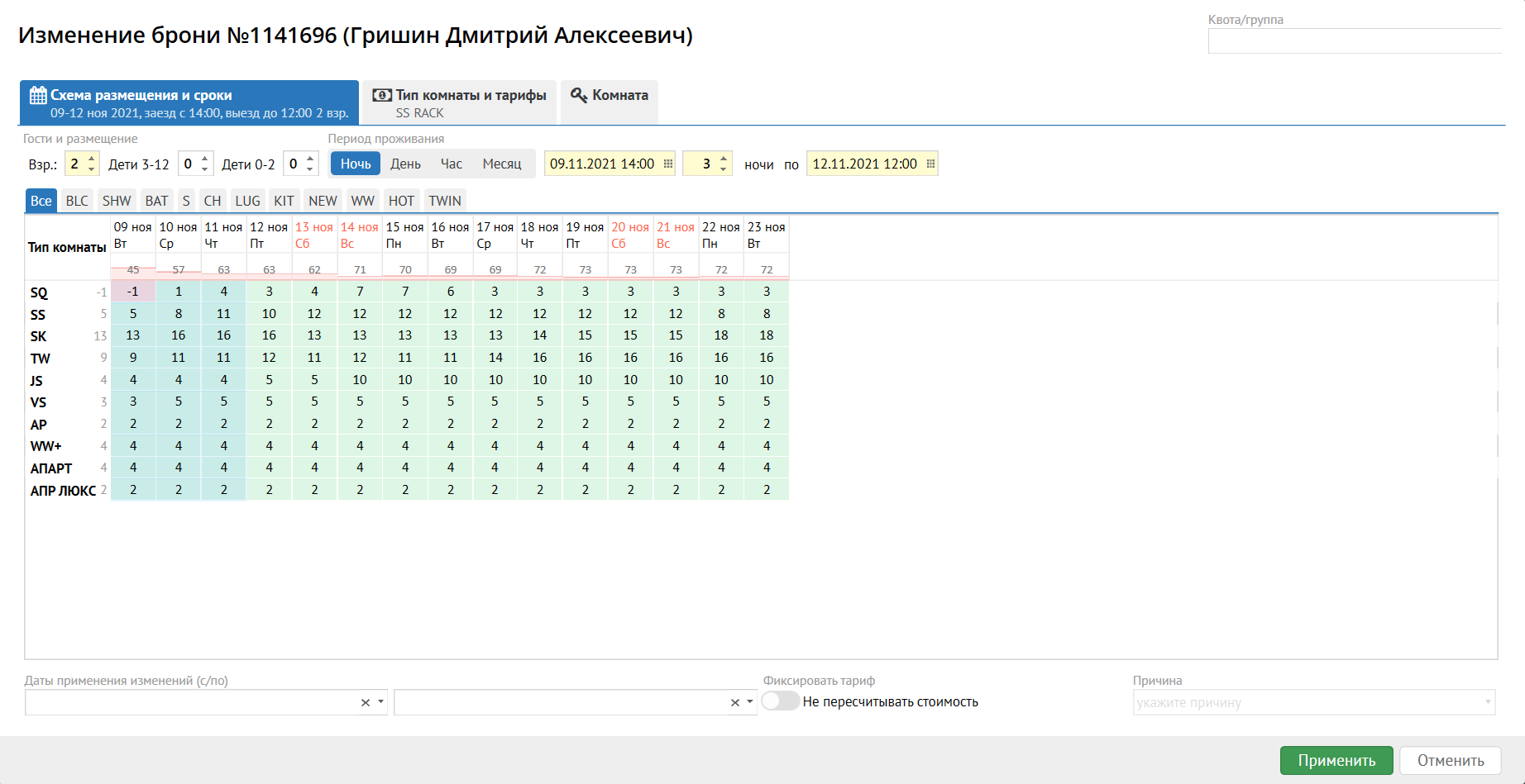 - переход к изменению дат и/или схемы проживания.