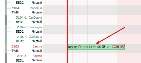 - Слева отображаются Номера комнат - Тип комнаты - Занята\свободна\на удержании - Тип уборки: