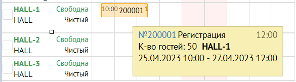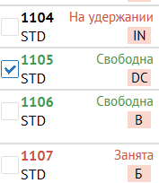 - Статус «бронь» обозначается в оранжевой рамке.