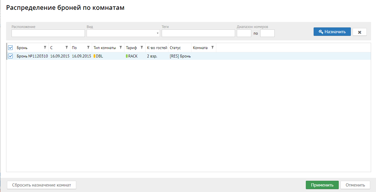 Поле "Диапазон номеров" - позволяет назначить конкретный диапазон комнат.