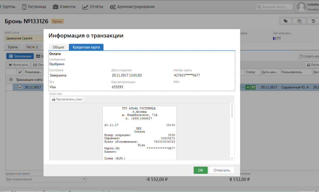 ФИО гостя автоматически капитализируется - при вводе в поля "фамилия", "имя" и "отчество" первые буквы будут автоматически заменены на заглавные.