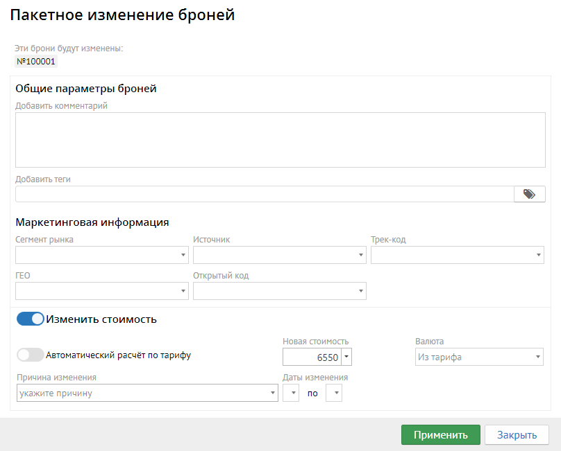Кроме того, пакетное изменение теперь доступно в карточке групповой брони.