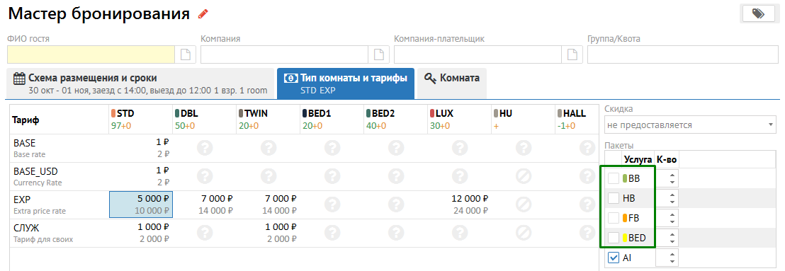 2) Добавлена возможность массово изменять тариф, а также даты заезда и выезда.