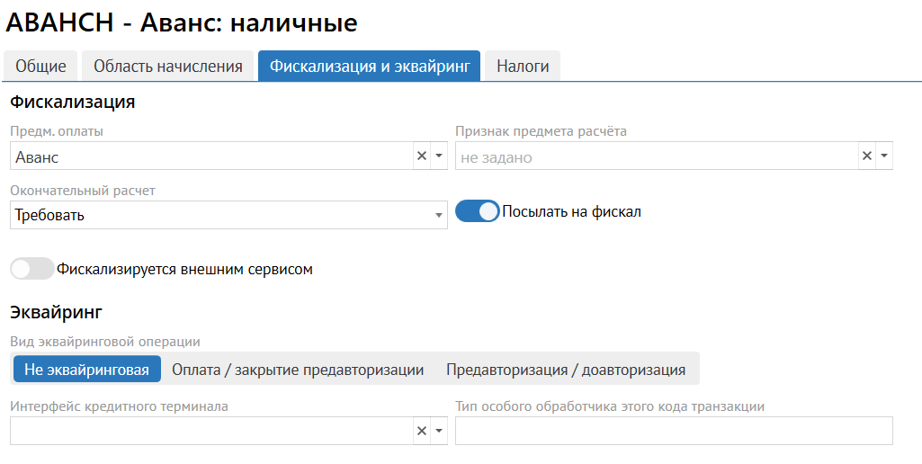 Интерфейс кредитного терминала — поле, которое определяет требования к конкретному фискальному интерфейсу. Если данное поле оставить пустым, для оплаты будет выбран первый доступный кредитный терминал на рабочей станции.