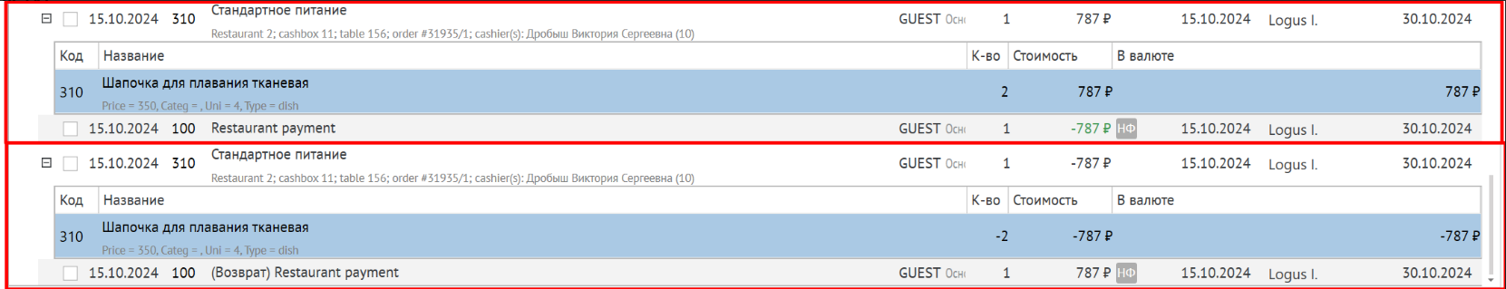 Реализована возможность начисления чека возврата, предоплаченного в ресторанной системе. При получении чека возврата формируются транзакции с обратными значениями: