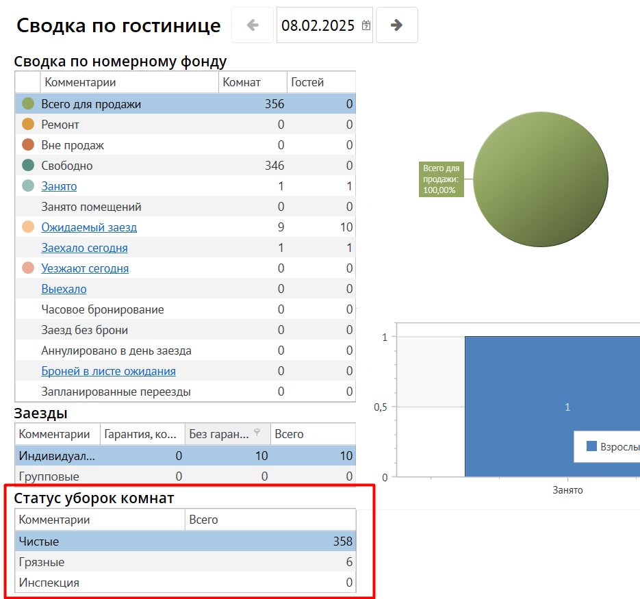 Сводка по гостинице: добавлена сводка по статусу уборок комнат