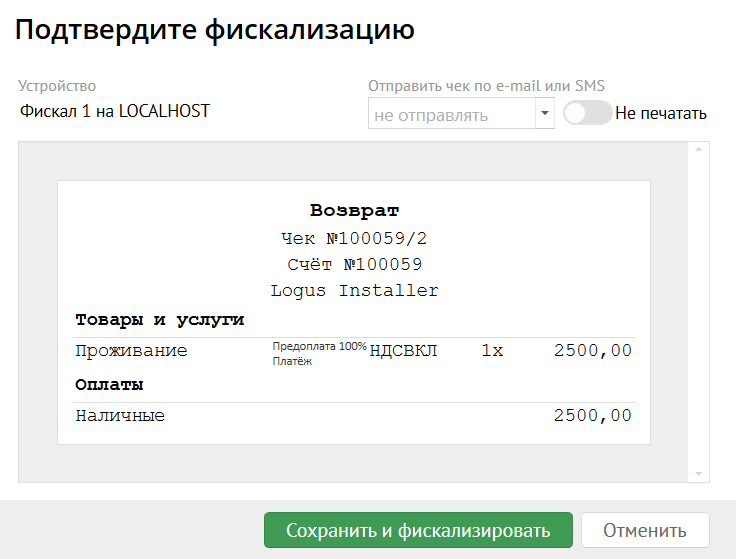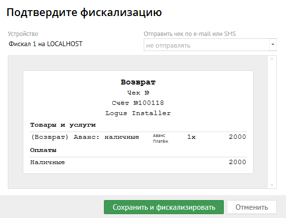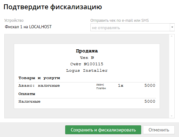 С версии 2.5 в Логусе также можно принимать 100% предоплаты. При приёме Аванса и Предоплаты у транзакции появляется двойной статус фискализации: первичная и завершающая.