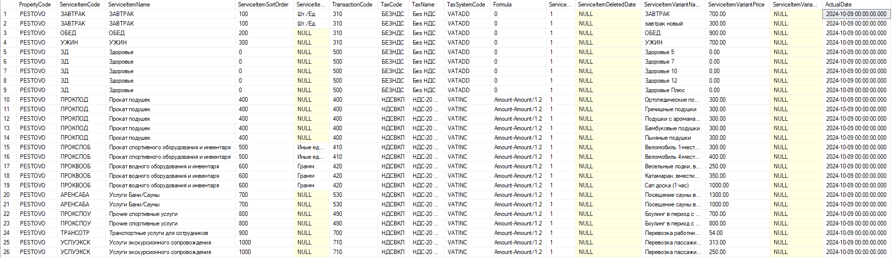 | ServiceItemVariantDeletedDate | DATETIME | Дата удаления строки варианта услуги | |