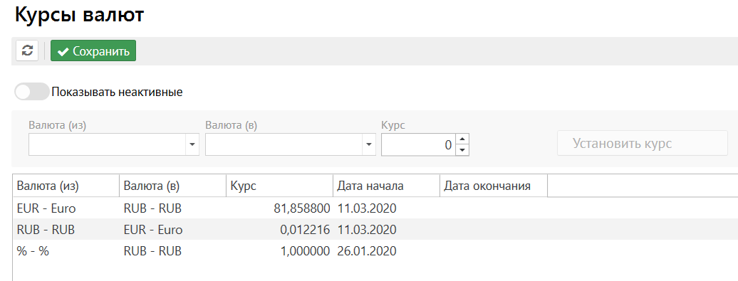 Feb 05, 2019И как будут учитываться курсы? Текущий справочник курсов предполагает ручное внесение каждый день с указанием активного курса.