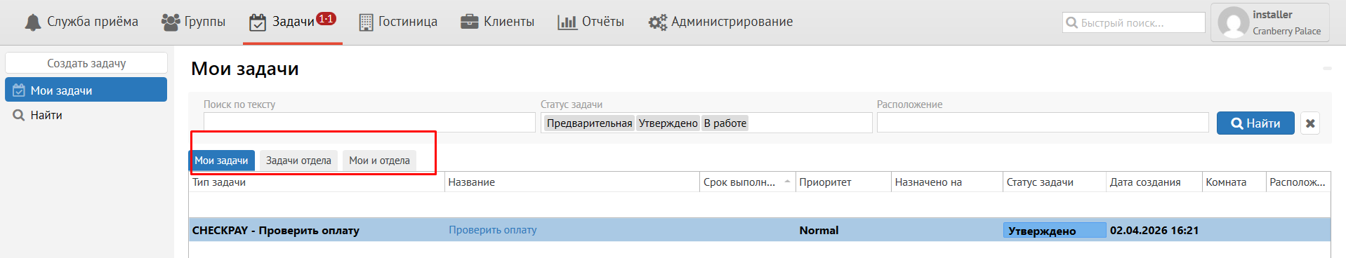 В раздел Мои задачи добавлен фильтр по типу исполнителя (мои задачи/задачи отдела/все):