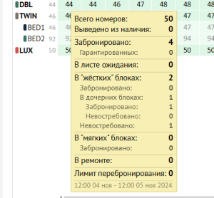 Забронировано - количество забронированных комнат из общего числа комнат, находящихся в "жёстких" блоках.