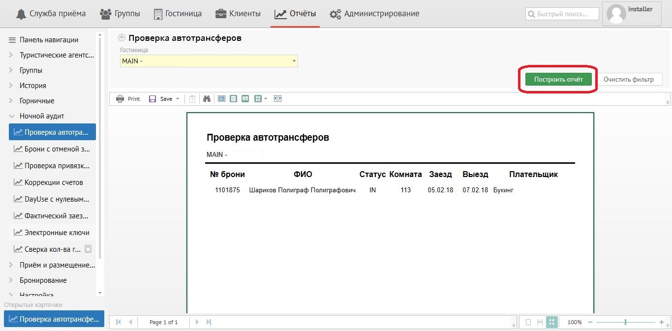 Проверка автотрансферов - отчет показывает гостей, проживающих по безналичному расчету (в поле компания-плательщик указан контрагент, в профиле которого выставлен одноименный параметр), но НЕ ИМЕЮЩИХ ИНСТРУКЦИИ АВТОТРАНСФЕРА. В идеале должен быть пустой.