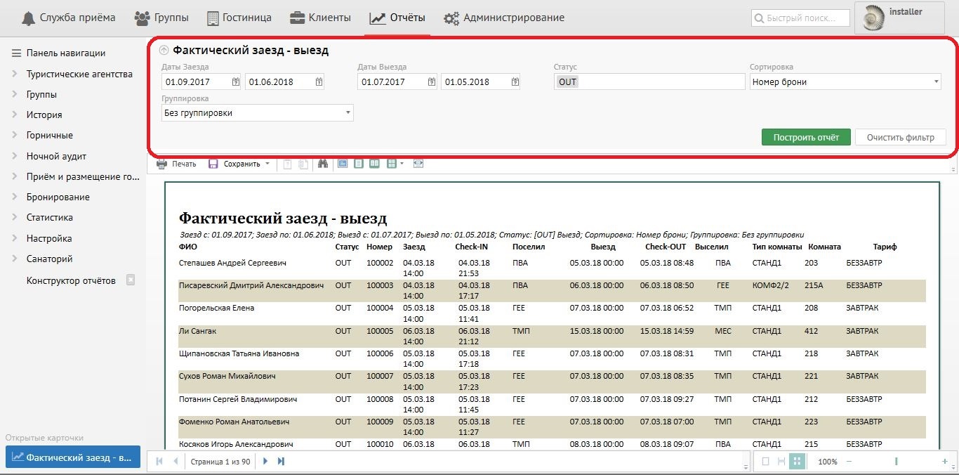 Фактический заезд - выезд - отчет, показывающий точное время поселения/выселения брони.