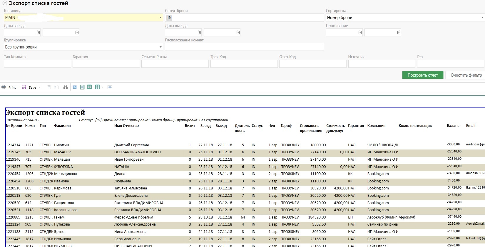 Экспорт списка гостей - отчет предназначен для более компактной выгрузки отчета в любой формат (выгружается таким образом, что для каждого гостя своя строка):