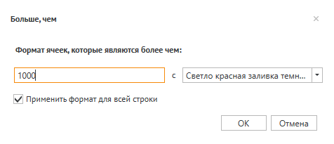 5. При желании выделить всю строку, ставим флаг "Применить формат для всей строки".