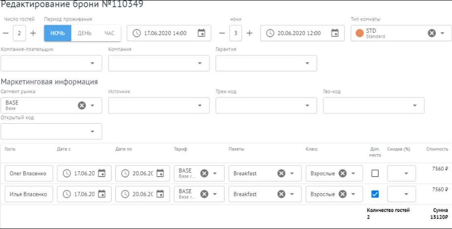 Несколько гостей в одной брони