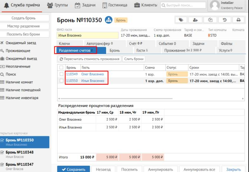 Если в брони несколько гостей, создается профиль только на главного гостя.