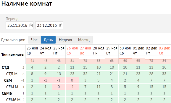 Таблица "Наличие номеров" рассчитывает наличие Многокомпонентных номеров с условием максимально плотного размещения компонентов.