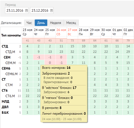 Но при этом следует понимать, что при детальном отображении наличия Многокомпонентных номеров значение изъятых из продажи номеров не является суммой броней, блоков и номеров на ремонте во всплывающей подсказке. Связано это с тем, что для каждого Компонента эти значения рассчитываются отдельно.