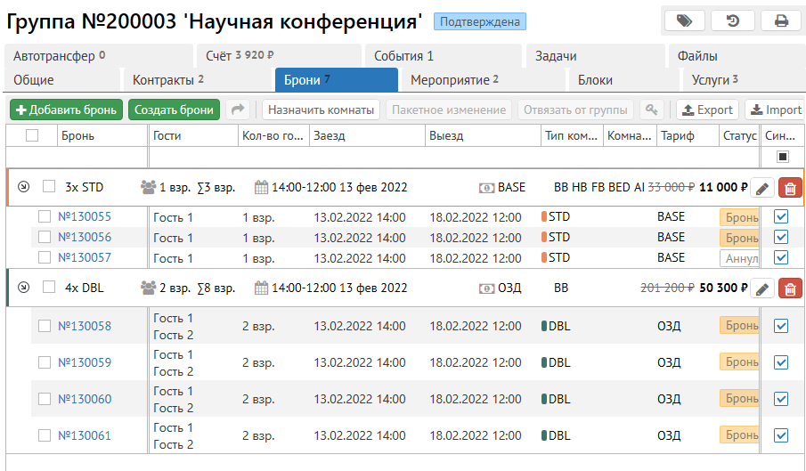 • Групповые брони или квоты, в которых используются блоки;