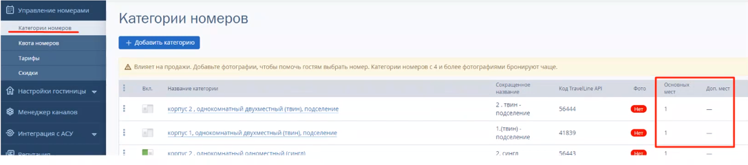 Это позволит связать основной родительский тариф TL с основным родительским тарифом в Логусе и не делать отдельной привязки. - Проверить настройки номерного фонда. Часто у клиентов есть несоответствие количество основных/дополнительных мест типов номеров в ТЛ с аналогичными типами номеров в Логус.