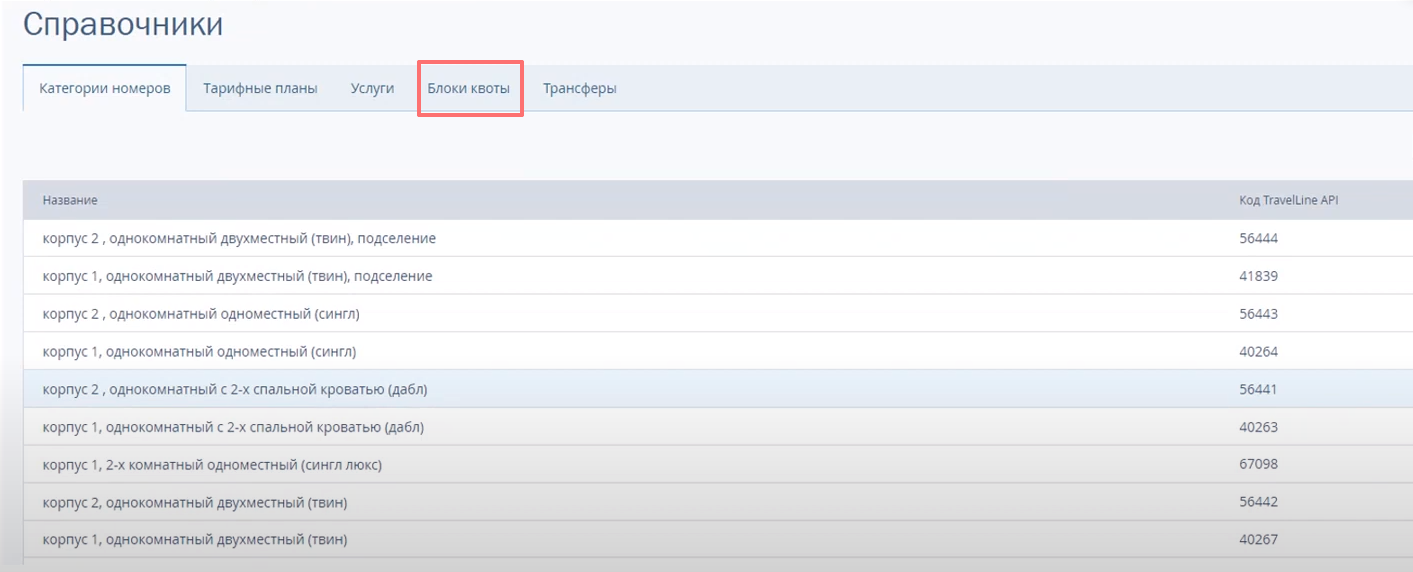 В разделе "Справочники" представлены все необходимые коды, которые используются при настройке интеграции. Из них обязательны "Блоки квоты": - В разделе "Интеграция с АСУ" будут представлены все необходимые данные для настройки конфига и модуля бронирования в АСУ: