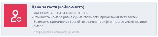 - Завести новые тарифы в тестовом кабинете. Санатории для модуля бронирования используют тарифы с признаком "цена за гостя (койко-место). При этом тарифы для менеджера каналов создаются с признаком "цена за номер".
