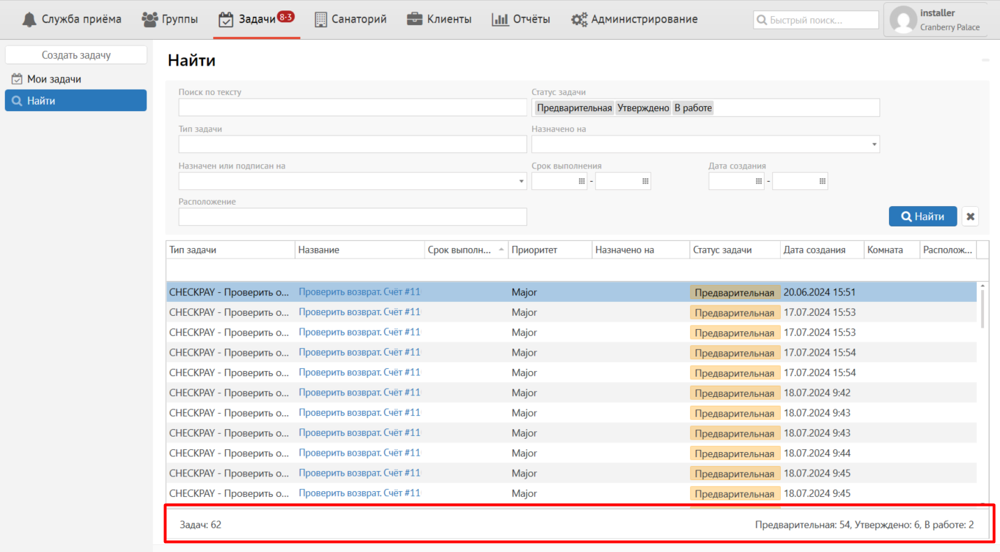 С версии 3.40.1, на экран добавлен счетчик количества задач в разрезе всех статусов.