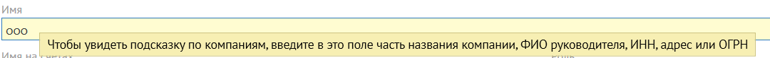 При вводе "Имя" система предложит список компаний и в соответствии с выбранной компанией автоматически заполнит поля.