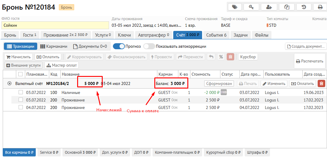 С версии 2.9.172 в строгом финансовом документе добавлено обозначение начислений для доходных транзакций и "Баланс" - показатель текущей суммы транзакций финансового документа(реализован для того, чтобы можно было понять, сколько необходимо доплатить по финдоку):