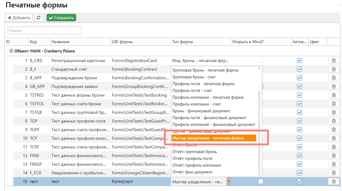 Для справочника печатных форм добавлен новый Тип формы соответственно: