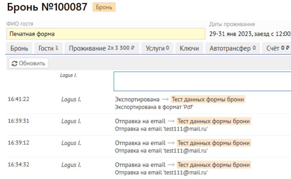 Индивидуальная бронь \ События: расширено логирование действий с печатными формами