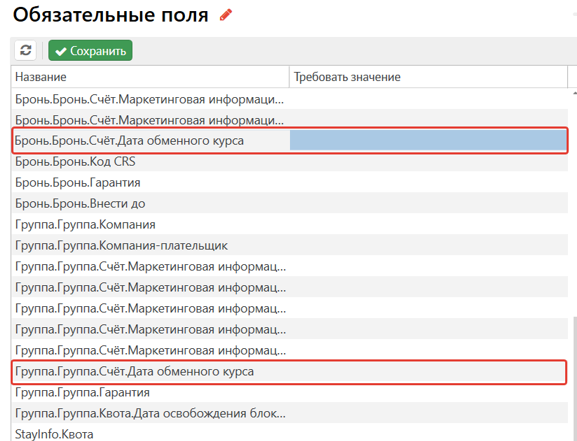 Появились новые варианты обязательности заполнения. Новые варианты есть только для сущности Бронь: