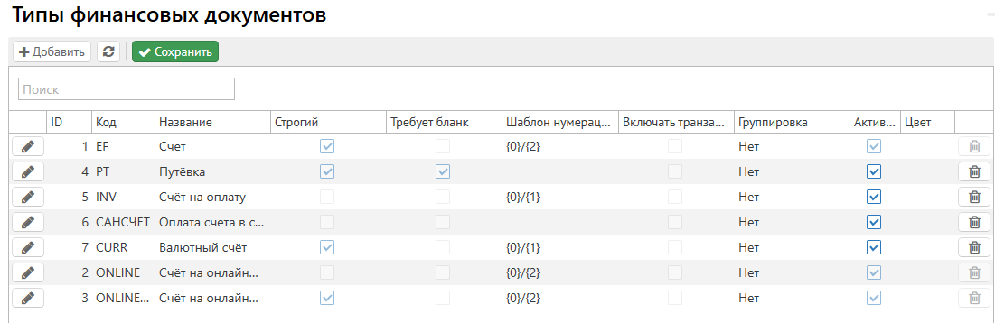 Типы финансовых документов - справочник, который содержит информацию о доступных финансовых документах на объекте. Финансовые документы бывают: