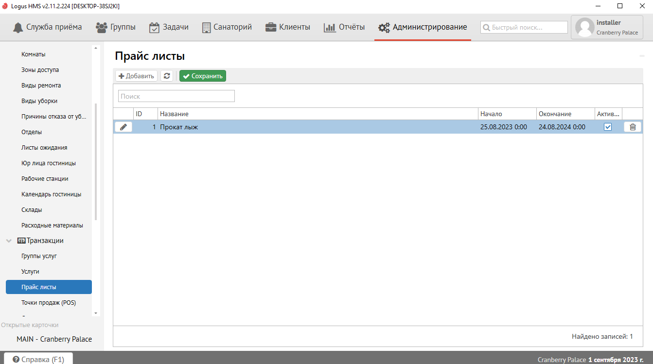 Прайс листы - справочник, для регулирования ценовой политики определенной услуги в пакете на разные дни. Для того, чтобы добавить новый прайс необходимо нажать "Добавить"(подробнее см. Прайс листы):