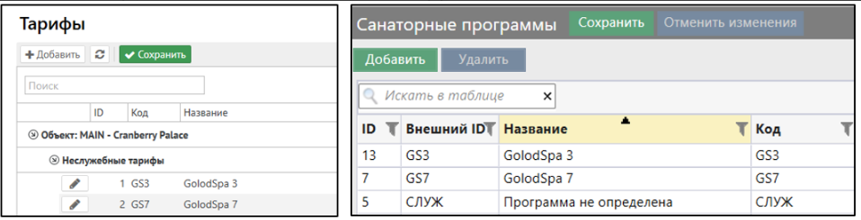Подробней: Настройка соответствия Кодов тарифов Logus и Санаторных программ в Санаториуме