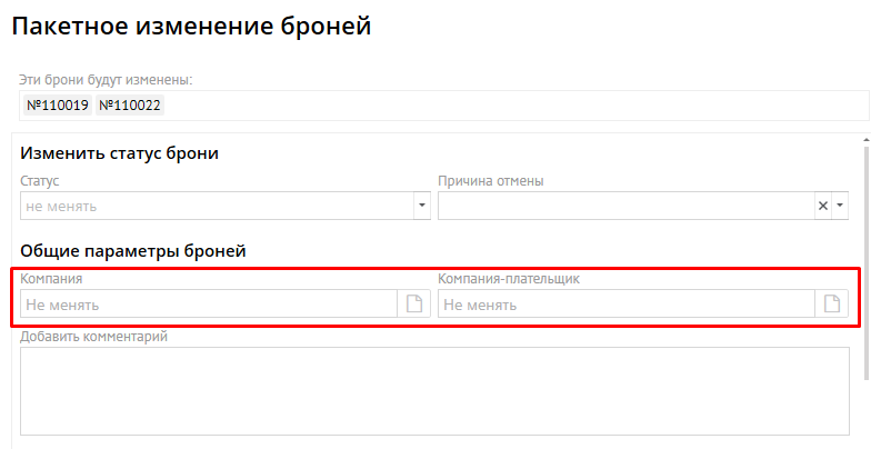 Брони: Пакетное изменение: Добавление в пакетное изменение компании и компании-плательщика