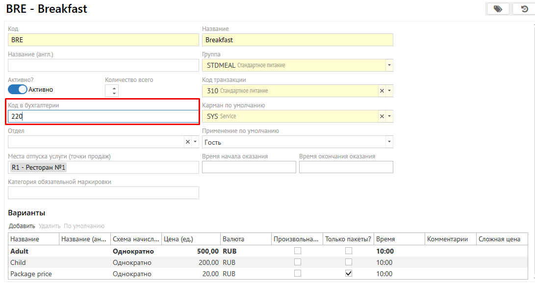 Администрирование: Услуги. Транзакции. Код в бухгалтерии.