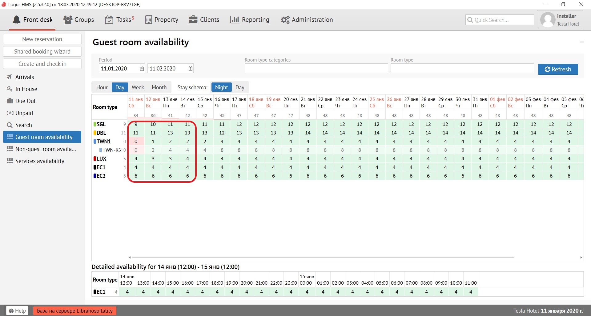 ATTENTION: By default the table of Availability of rooms opens by day.