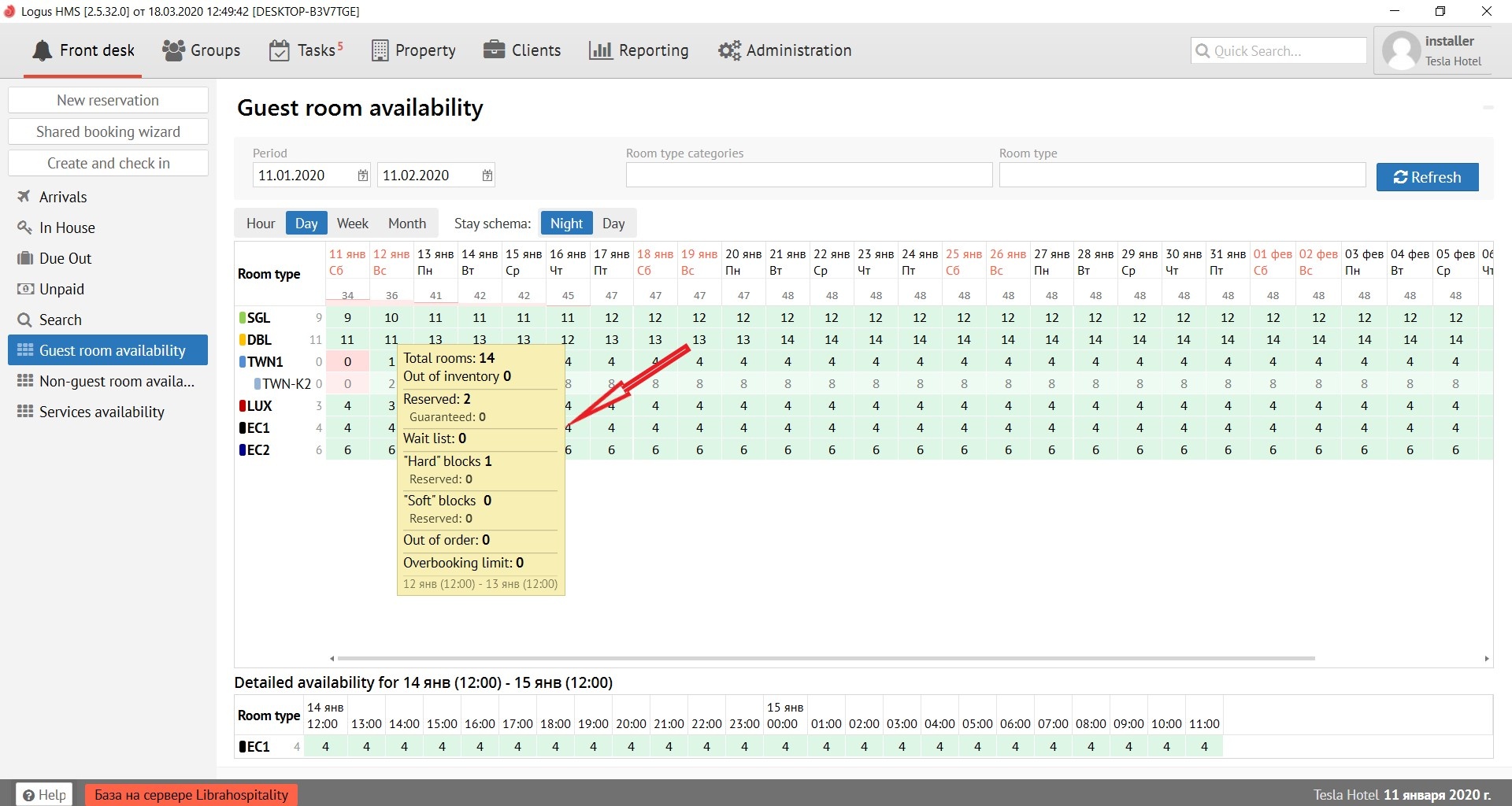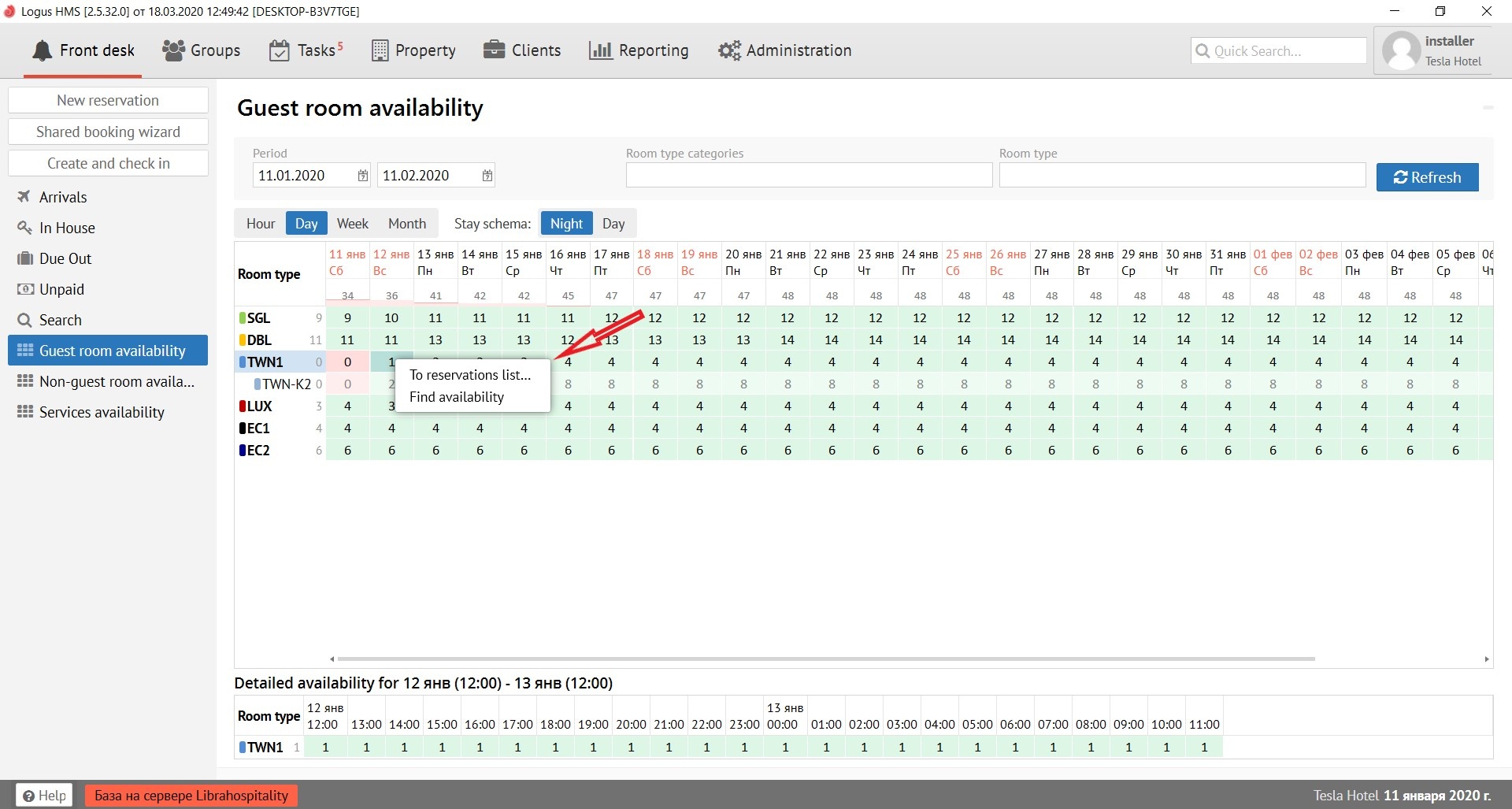 When you right-click on the availability number, 2 hints appear in pop-up menu: “To the list of reservations” and “Diagnostics of availability”