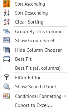 Show Group Panel - display pop-up window to select a columns.