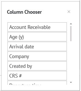 In any list (Due Out, Arrivals, Search, In House), you can use the choice of columns to form it. To do this, right-click on any heading (Room, Guest Name, etc.). Then the following pop-up window appears: