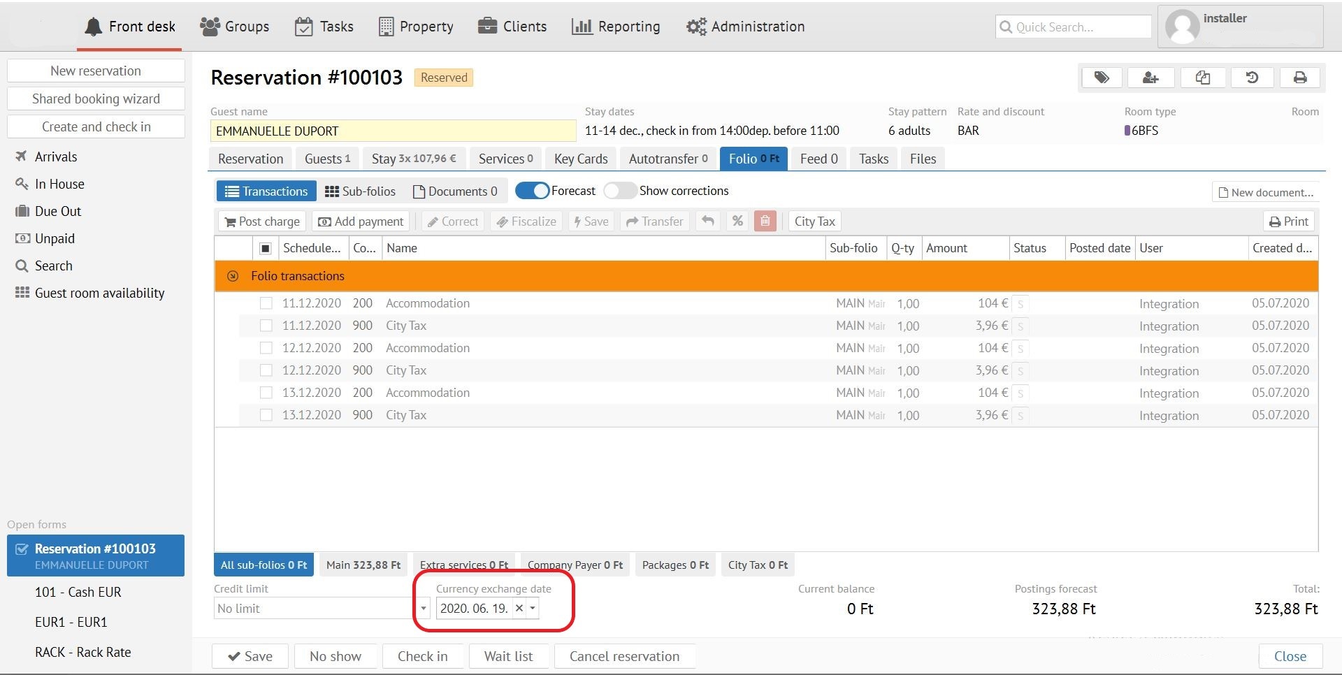 While resrvation creation in foreign currency rate - exchange rate date varies automatically. If exchange rate date need to be changed, go to tab “Folio” and change the date.