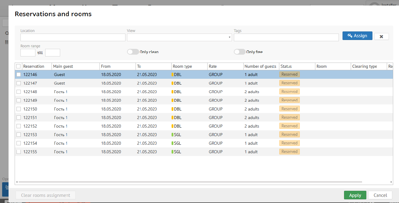 From date ..... To date .... - First date for check in of first guest from group ...... Last date for check out of last guest from group.